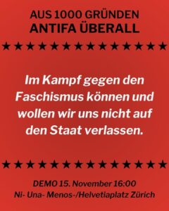 Heute fanden in St. Gallen aufgrund interner Streitigkeiten gleich zwei Mobilisierungen des nationalistischen «Anti-Corona»-Spektrums statt. Im Vorfeld waren rund 3’000 Teilnehmende angekündigt worden, erschienen sind letztlich nur wenige Hundert. Während es bei beiden Umzügen personelle Überschneidungen gab, beteiligten sich insbesondere an der Demonstration von Mass-Voll zahlreiche Neonazis. Dies ist kein…